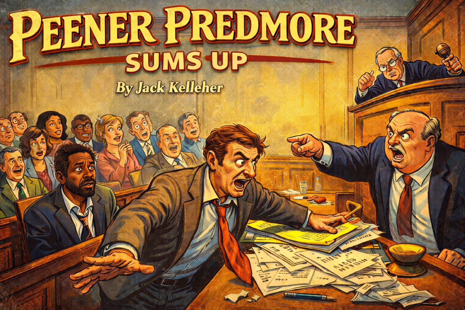 Inside the courtroom, Ralph ‘Peener’ Predmore, attorney at law, was addressing a jury on behalf of Traquan Farley, accused of public lewdness. Again.