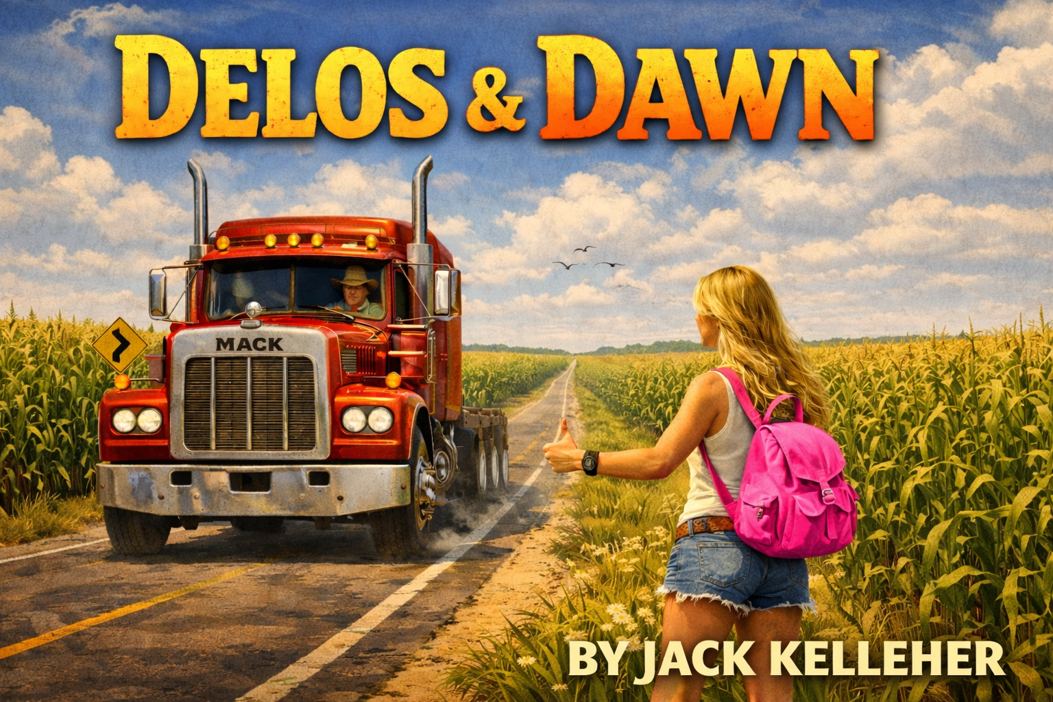 Delos watched in his side mirror as Dawn trotted up to his idling truck. She was wearing Daisy-Mae cut-offs, a turquoise midriff tee shirt, and black high-top tennies. She had on a New York Yankees ball cap and mirror sunglasses. Her ginger hair was tied in a loose ponytail which tumbled between narrow shoulder blades. Delos could see firm teacup breasts through her perspiration-soaked top. She looked about sixteen but had to be older. No parent would let their teenager out dressed like that. Delos made space in his beer garden fantasy for a second mug.